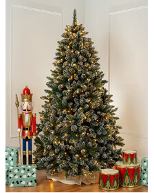 If you want a white snowy Christmas in your home then this is the tree for you. It has a white snow sprinkle on end of all the tree branches like a real snow look and with the beautiful warm white lighting looks spectacular.