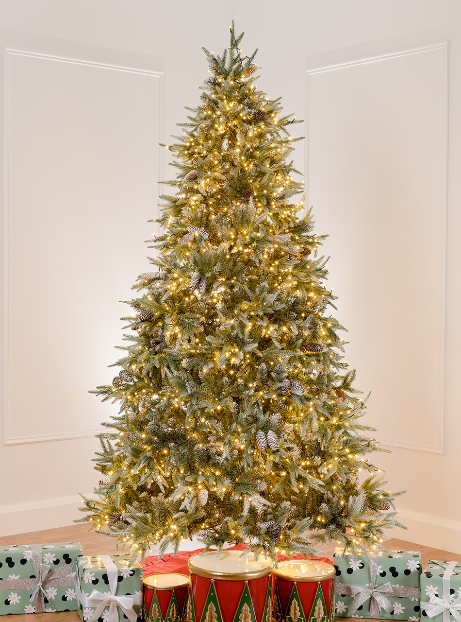 Straight from the Woods this tree has been hand chosen and made just for you and your family. The highest of quality from our Ultra Premium Deluxe Range of Pre-Lit Christmas tree, exclusive to Amazing Christmas, the Birmingham Frosted Fir won't disapoint! Baubles hang so effortlessly your tree almost will look like it is straight from a magazine. The pinecones highlight the realism and the frosted tips give it that extra shine that will make your tree standout from the rest.